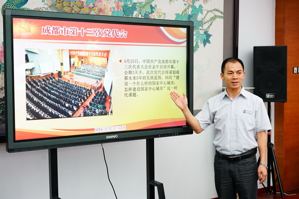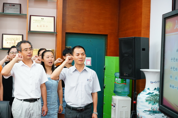 2017年6月25日下午,我校党支部在三楼会议室举行了以“重温入党誓词•争当优秀党员•喜迎党的“十九大”为主题的党员大会。曾彩雁书记先简要总结了本期党支部工作和取得的成绩,随后带领全体党员重温入党誓词并再次传达了省、市党代会会议精神,围绕成都市“建设全面体现新发展理念的国家中心城市”总体目标,结合学校实际,给全体党员提出新的要求。最后曾书记希望广大党员教师群策群力,凝心聚气,为学校建设添砖加瓦!