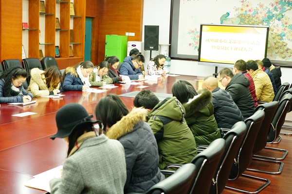 1月29日下午,我校党支部在三楼会议室召开全体党员大会。党支部曾彩雁书记先带领大家深入学习贯彻“党的十九大”以及省、市、区各党代会精神,随后对党支部本学期工作进行总结,最后全体党员进行了民主评议。