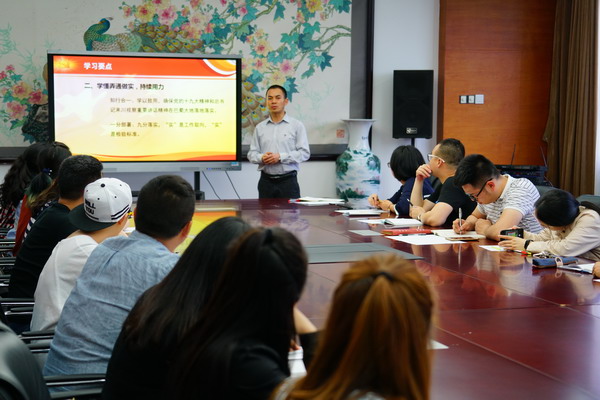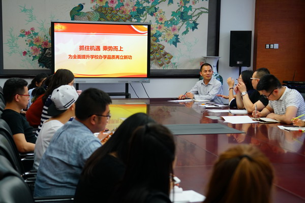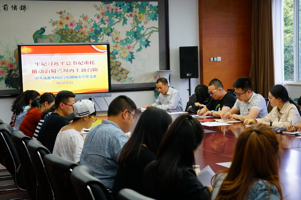 On April 23rd, the party branch of our school held a meeting for all party members in the meeting room on the third floor. In the meeting, Secretary Mr Zeng Caiyan of our school’s party branch combined the thorough implementation of socialist ideology with Chinese characteristics of Xi Jinping in the new era and the 19th National Congress of the Communist Party of China and study, publicity and implementation of the spirit of address when General Secretary Xi came to Sichun to inspect in earnest. All party members had a vivid subject party class. In the end, Secretary Mr Zeng required all party members to stay true to the mission, remember the mission well, grasp the opportunity and make new contributions for improving the quality of the school.
