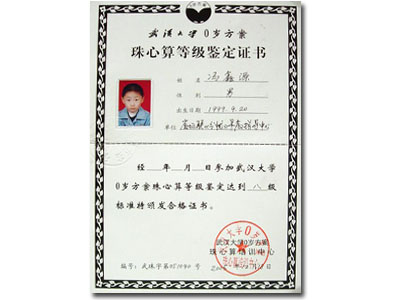 颁奖词:有志不在年高。一年级五班的冯鑫源同学经过自己的努力,在参加武汉大学0岁方案珠心算等级考核中达到了八级水平,他还在“新世纪杯”中华青少年美术摄影大赛中荣获“优秀奖”,在“首届全国义演书画人才推选活动”中荣获“优秀奖”。