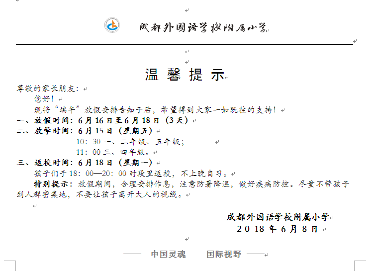 关于“端午节”放假安排的温馨提示